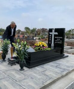 Mộ công giáo đá hoa cương đen nguyên khối trang trọng – Chuẩn Phong Thuỷ – TT26