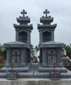 Mộ Đá Đôi Ba Mái làm từ đá ghi sáng sang trọng – Chuẩn Phong Thuỷ – TT22