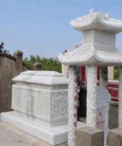 Mộ đá marble trắng 2 mái đao – Chuẩn Phong Thuỷ – TT10