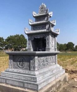 Mộ đá xanh đen Ninh Bình ba mái trang trọng – Chuẩn Phong Thuỷ – TT31
