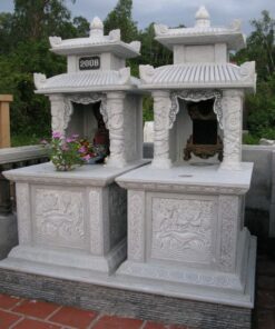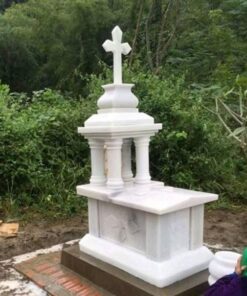 Mộ đá marble trắng 2 mái đao – Chuẩn Phong Thuỷ – TT10